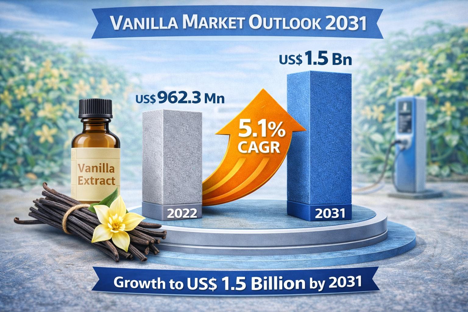 The global vanilla market is witnessing steady expansion, driven by evolving consumer preferences toward natural flavors, organic food products, and premium bakery offerings. Valued at US$ 962.3 million in 2022, the industry is projected to grow at a CAGR of 5.1% from 2023 to 2031, reaching an estimated US$ 1.5 billion by the end of 2031. Vanilla’s unique flavor profile, pleasant aroma, and wide-ranging applications continue to position it as one of the most sought-after natural ingredients worldwide.